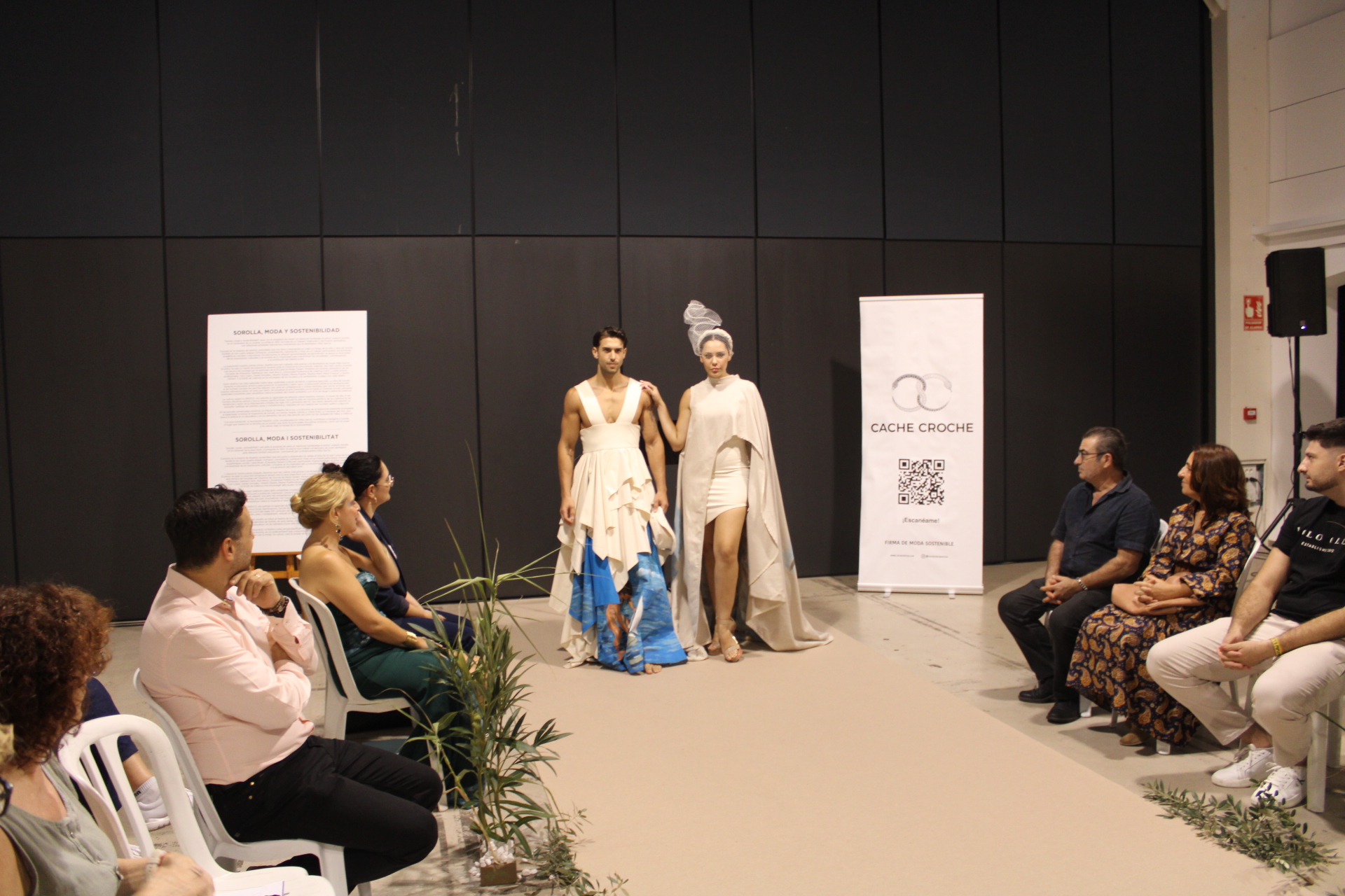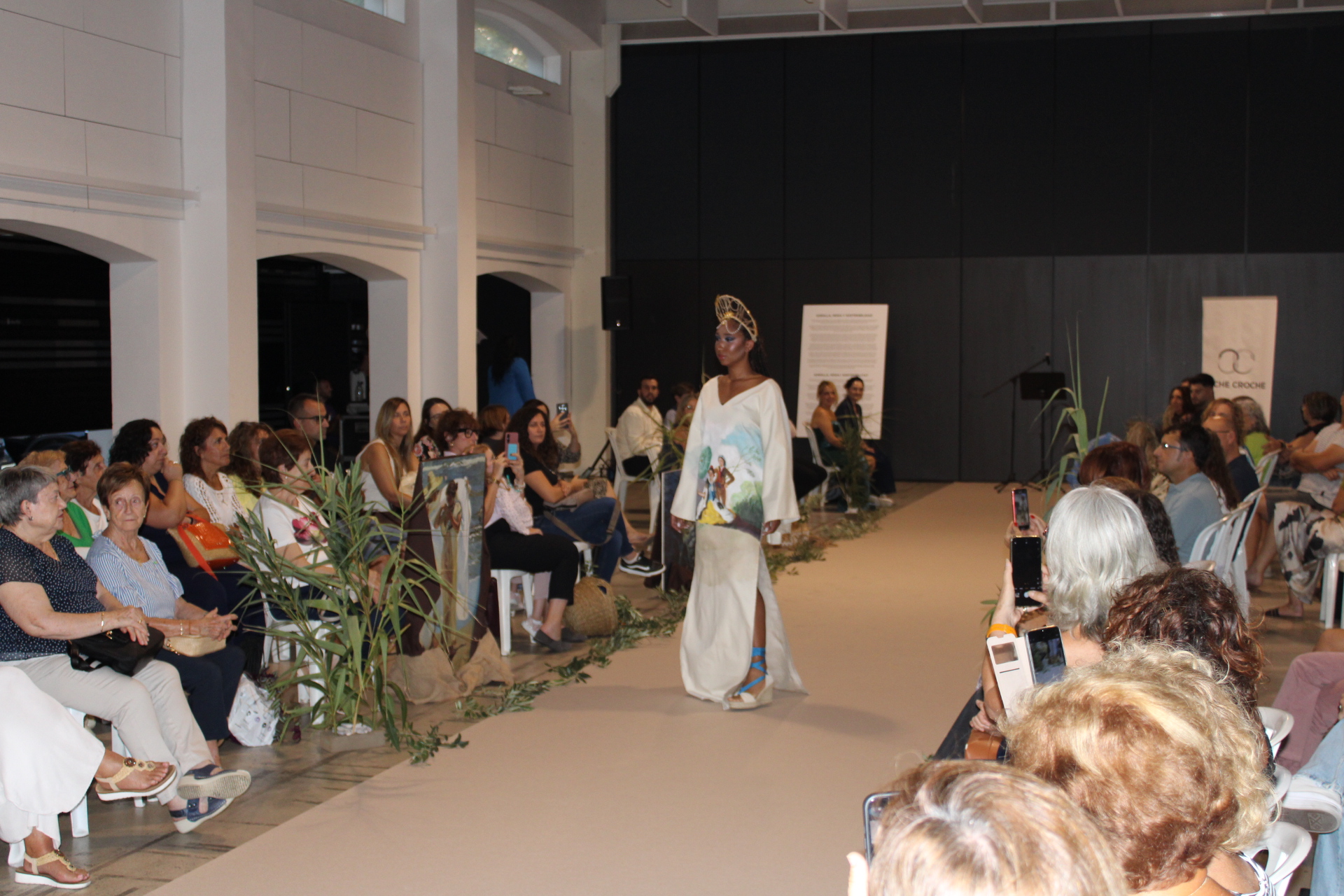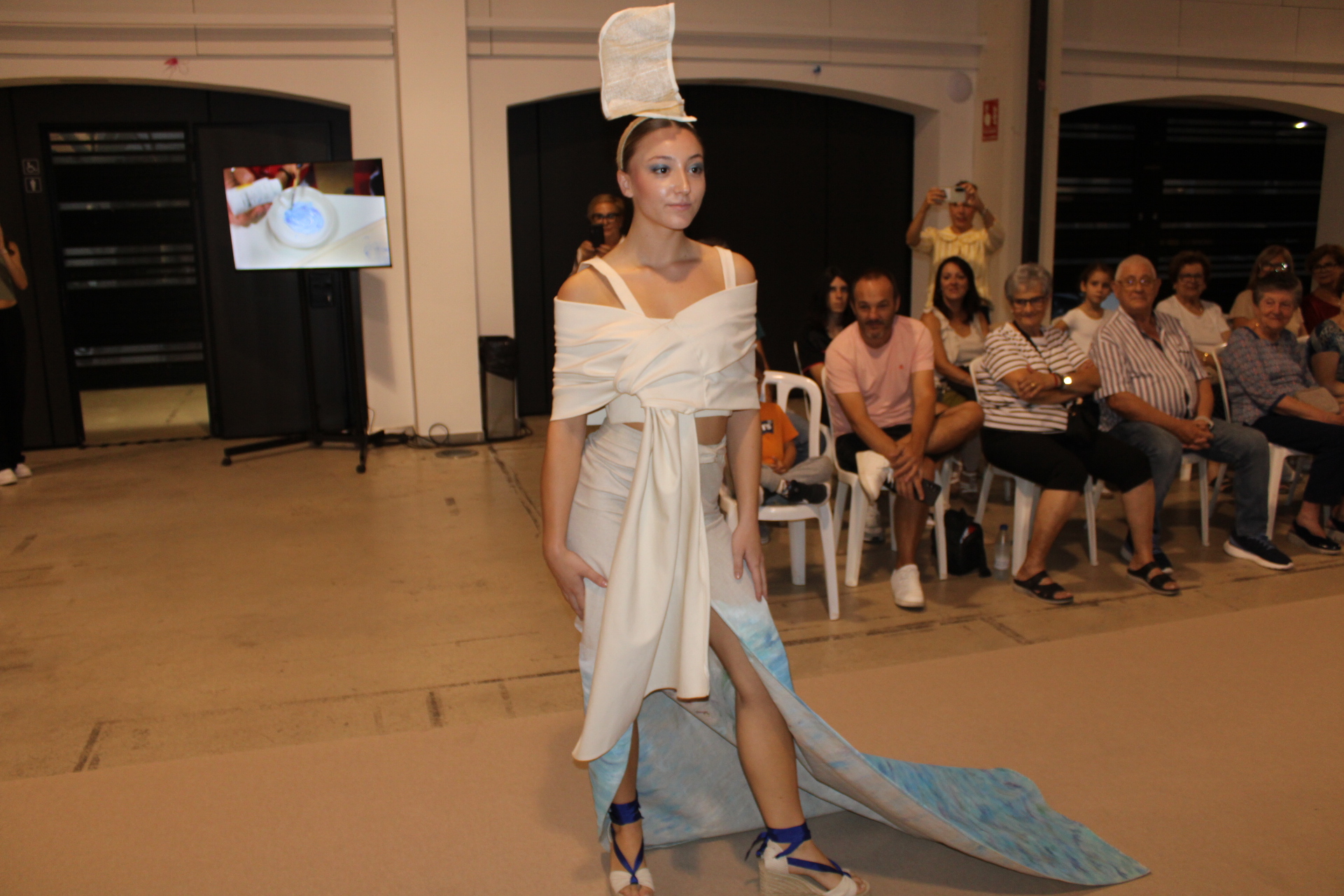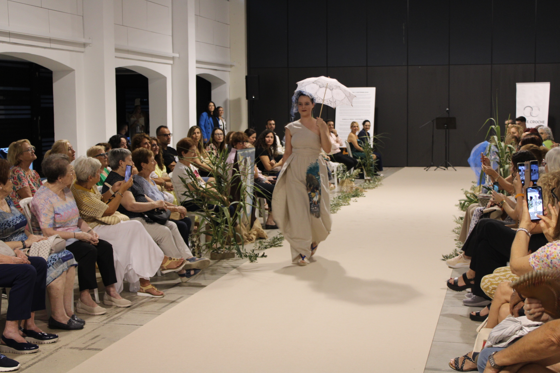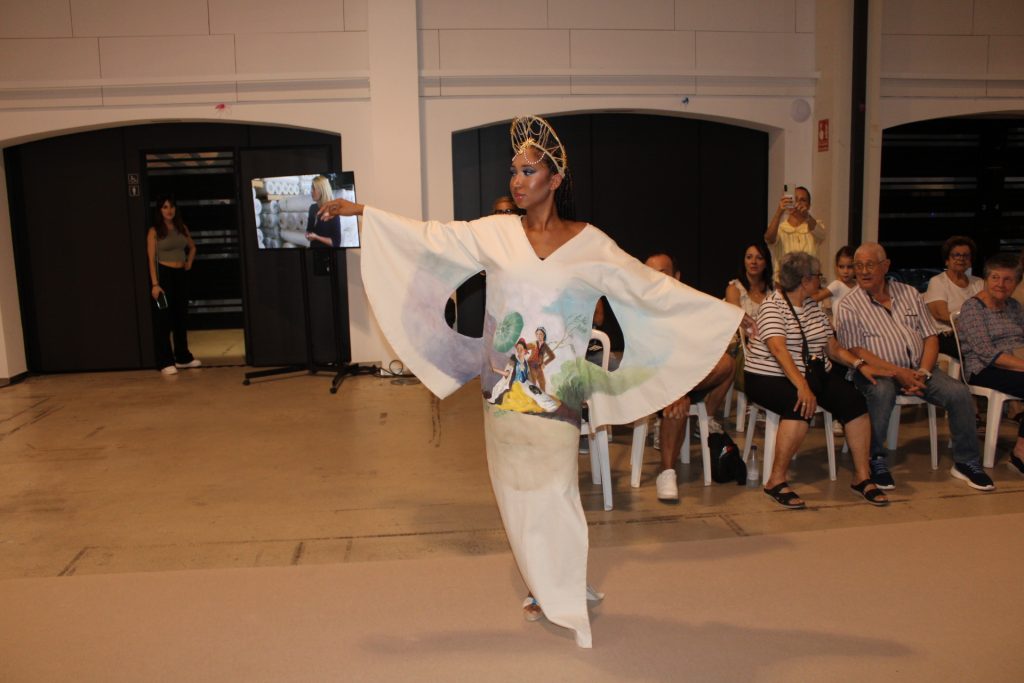 A continuació, el Prado d’Ondara va acollir la inauguració de l’exposició i desfilada “Sorolla, moda i sostenibilitat”, una proposta artística impulsada per la dissenyadora Alba García (CACHE CROCHE), que va convertir l’espai en una passarel·la inspirada en la llum mediterrània de Joaquín Sorolla. L’acte inaugural va comptar amb la intervenció de la Regidora de Cultura, Rosa Ana Marí, qui va destacar “la importància de promoure iniciatives que combinen creativitat, respecte pel medi ambient i implicació del talent local”. Segons Marí, “aquesta desfilada és un exemple de com la moda pot ser una eina de transformació social, educativa i cultural”. L’esdeveniment va brillar per la seua posada en escena cuidada, amb una passarel·la i una ambientació evocadora. Els vuit dissenys exclusius, elaborats amb teixits sostenibles, tints naturals i processos responsables, van ser pintats a mà per estudiants de les Escoles d’Artesans, Salesians Sant Joan Bosco, la Universitat Politècnica de València (UPV) i set artistes professionals. Els tocats i barrets van ser confeccionats per l’Escola Superior de Disseny de València (EASD), i la tintoreria Urban Clean va col·laborar en el manteniment de les peces. Els dissenys van ser lluïts per models locals, que van desfilar davant un públic entregat. L’inici de la desfilada va anar a càrrec de l’escola de gimnàstica rítmica d’Ondara, amb una actuació inspirada en el mar de Sorolla que va emocionar els assistents. Els dissenys romandran exposats al Prado fins al 16 d’octubre, oferint una oportunitat única per gaudir de la fusió entre moda, art i sostenibilitat.