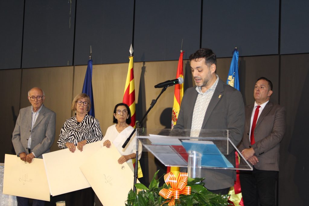 A continuació, ha tingut lloc l’acte institucional de lliurament dels IV Premis d’Honor Vila d’Ondara, presidit per l’Alcalde José Ramiro i la Regidora de Cultura Rosa Ana Marí. En el seu parlament, l’Alcalde ha destacat que hui «reconeixem persones extraordinàries», «que ens inspireu a continuar treballant per una Ondara més viva, més humana i més compromesa amb les seues arrels». Els guardonats d’enguany han estat:
