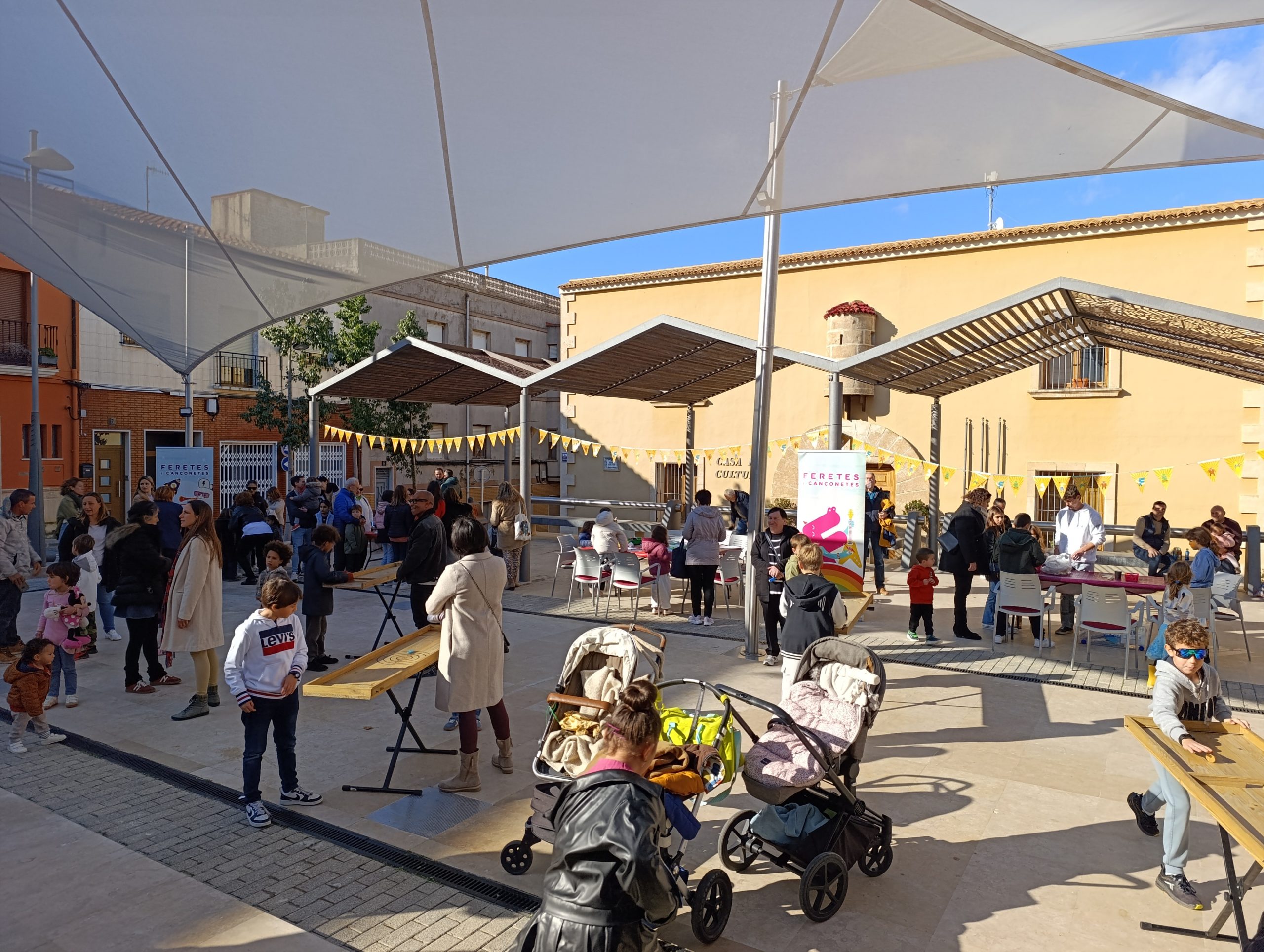 Ondara, 31.12.25. Avançant-se a les campanades oficials de hui dimecres 31 de desembre a la mitjanit i sobretot subratllant el caràcter intergeneracional i familiar de la programació «Viu el Nadal a Ondara» coordinada des de diferents regidories, la Plaça Major d’Ondara ha acollit aquest matí i migdia una de les grans novetats de la programació nadalenca, es a dir, les «Menudes Campanades» i, en aquesta segona edició, les II Campanades per a xiquets i xiquetes d’Ondara. Un divertit esdeveniment que s’ha desenvolupat als peus la Torre del Rellotge, aprofitant així mateix l’espai obert de la Plaça Major i la proximitat i simbologia del campanar ondarenc en una jornada tan assenyalada. I és que des de les 11:00 hores del matí, el recinte ha vibrat amb la música i animació de DJ Butoni i amb els tallers i jocs que han precedit l’arribada del migdia i les respectives campanades amb què els més menuts han celebrat l’entrada prematura del 2026. Les gominoles de la sort i els pintacares han completat un matí de gaudi i diversió familiar que coincidia amb un dia ben assolellat.