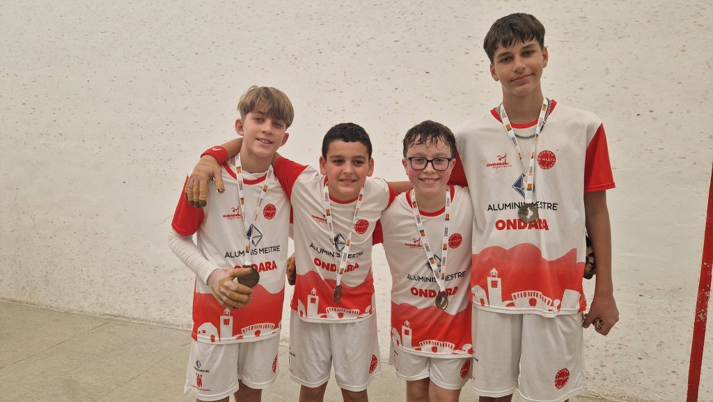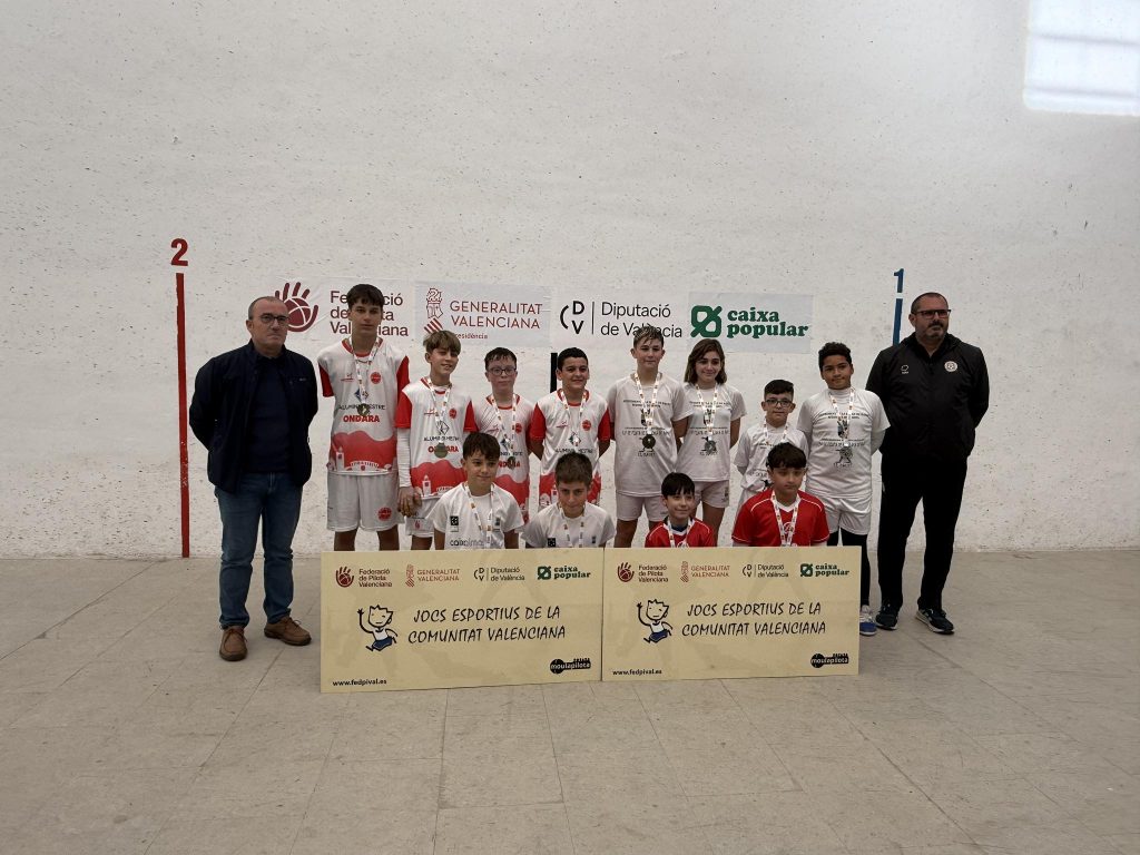 Ondara, 22.12.25. L’Escola Municipal de Pilota d’Ondara, coordinada per Juanma Garrido i entrenada per Raül Blasco i Marc Terrades, ha aconseguit el títol de campió autonòmic en categoria aleví, en la final autonòmica A de Raspall dels Jocs Esportius de la Comunitat Valenciana (JECV), disputada el passat dissabte 20 de desembre al Trinquet de Càrcer.