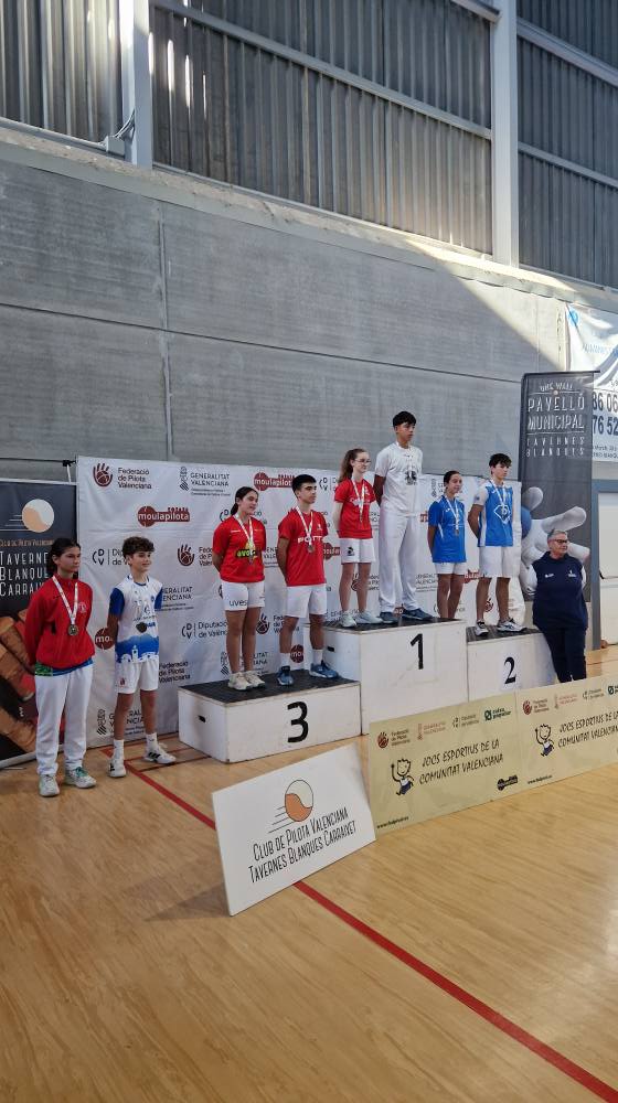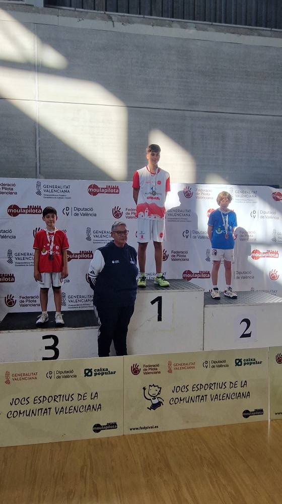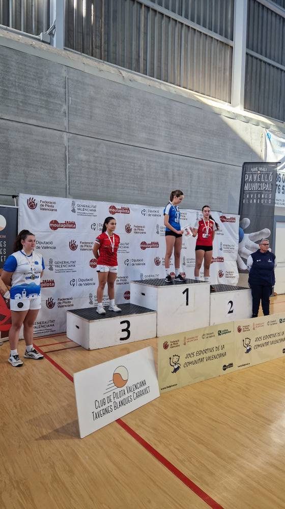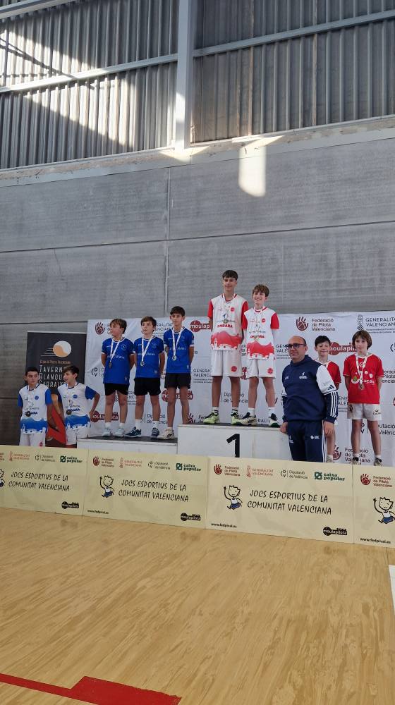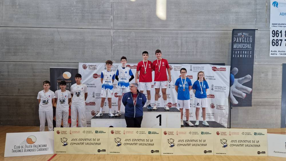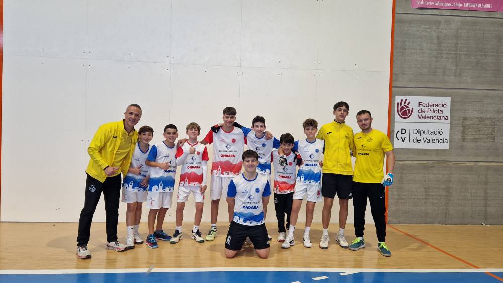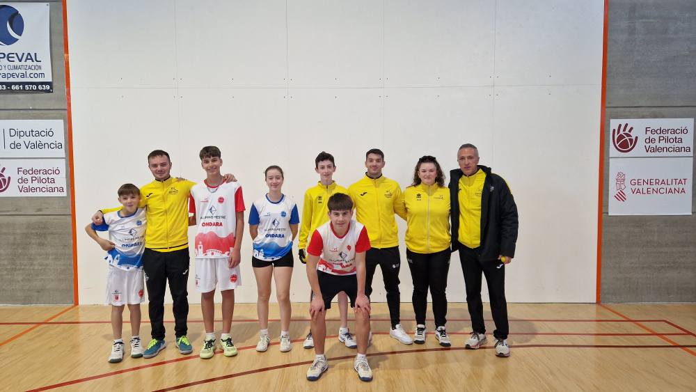Ondara, 09.12.25. L’Escola Municipal de Pilota d’Ondara, coordinada per Juanma Garrido i entrenada per Raül Blasco i Marc Terrades, ha aconseguit uns resultats excel·lents en les finals autonòmiques de la modalitat Onewall dels Jocs Esportius de la Comunitat Valenciana (JECV), disputades els dies 6 i 8 de desembre al pavelló de Tavernes Blanques.