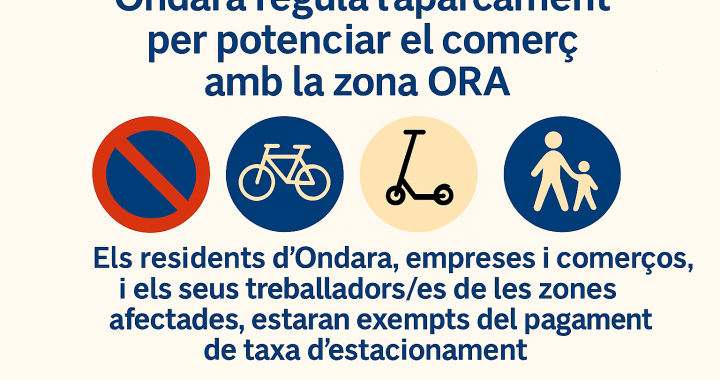 Com a principal novetat, l’Ajuntament d’Ondara pretén fer un pas decisiu en la gestió de la mobilitat urbana i el suport al sector comercial amb la incorporació, en l’Ordenança de Circulació, de la nova zona ORA (zona blava d’estacionament regulat). L’objectiu principal és afavorir la rotació de vehicles en les zones de major afluència (especialment als voltants del parc comercial), facilitant així que els clients del teixit comercial local i de les àrees de serveis puguen trobar aparcament amb major agilitat. Amb aquesta regulació, el consistori busca dinamitzar l’economia local i evitar l’estacionament de llarga durada que bloqueja l’accés als establiments durant l’horari comercial. Una de les premisses fonamentals d’aquesta nova ordenança és que no supose una càrrega econòmica per a la ciutadania d’Ondara ni per a aquells que es desplacen diàriament al municipi per motius laborals. En aquest sentit, el text de l’ordenança destaca dues exempcions principals: