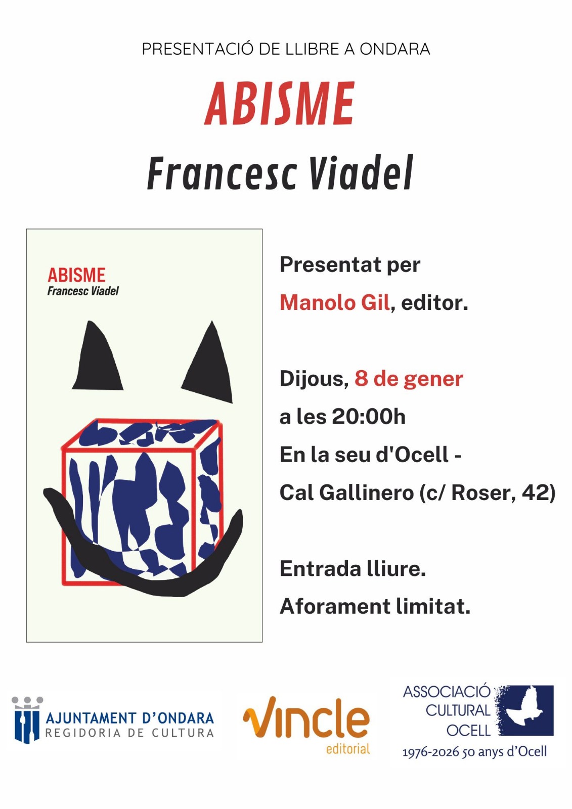 Comunicat Associació Ocell: OCELL ACULL LA PRESENTACIÓ DEL LLIBRE “ABISME” DE FRANCESC VIADEL