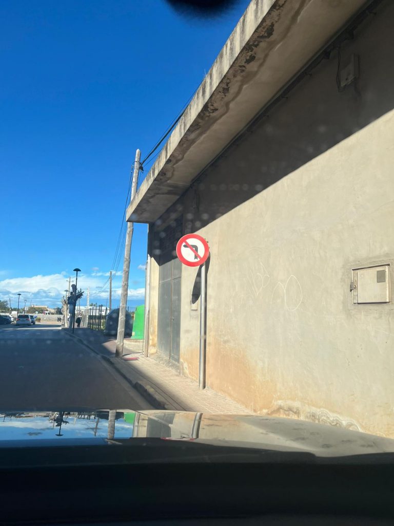 - La senyalització obligant a girar a l’esquerra en l’eixida del pàrquing de la farmàcia.