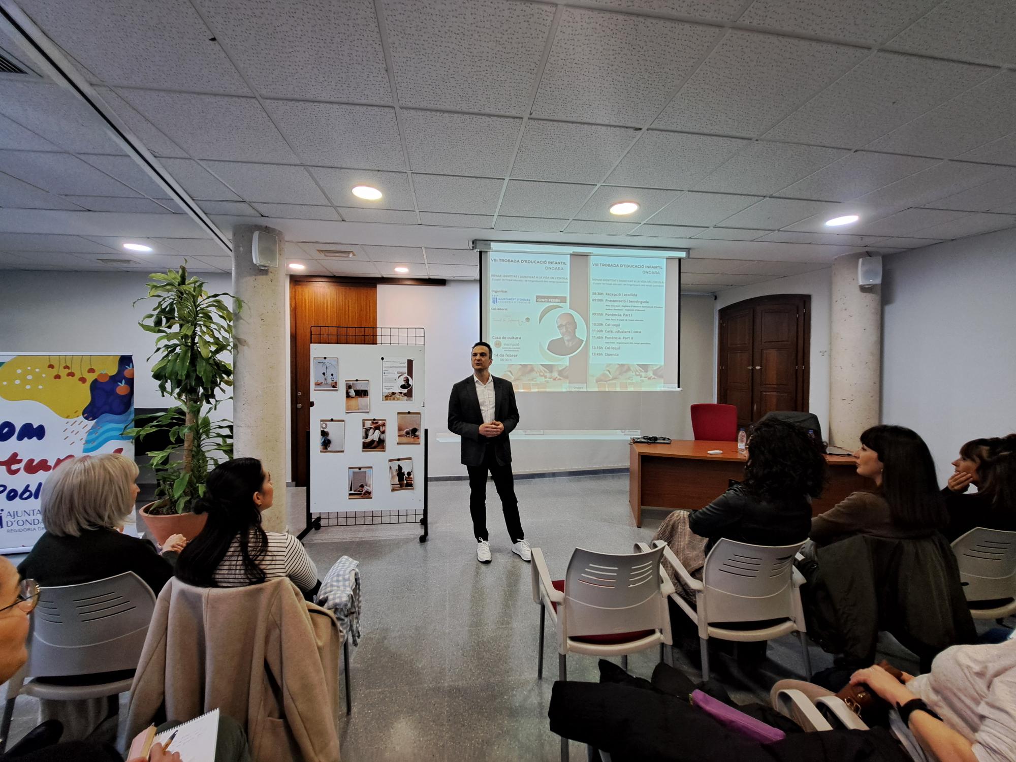La trobada d’enguany va estar conduïda pel pedagog italià Gino Ferri, que va centrar la formació en l’organització del temps i de l’espai a l’escola, dos elements clau per afavorir una pedagogia relacional i una construcció activa de l’aprenentatge. El ponent va convidar els docents a reflexionar sobre la necessitat de crear espais que faciliten l’autonomia, la descoberta i la investigació, i temps educatius que respecten els ritmes reals de les criatures. Les dues ponències —una dedicada als espais educatius i l’altra als temps quotidians— van generar un alt grau d’interacció i debat entre les persones assistents.