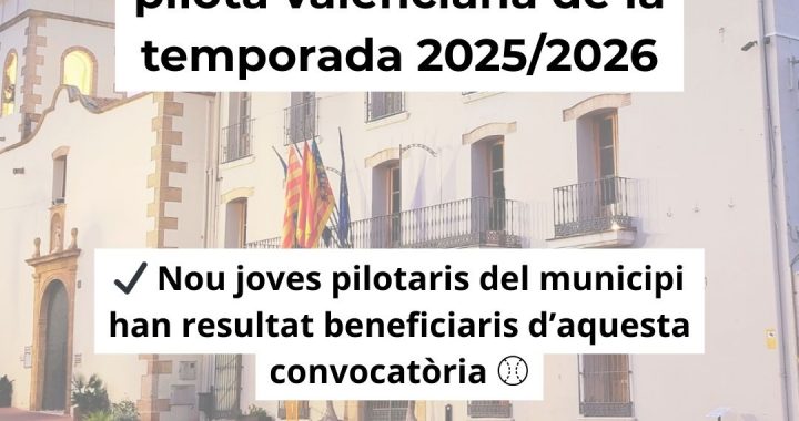 Ondara, 04.03.26. L’Ajuntament d’Ondara ha abonat hui 4 de març les ajudes municipals dirigides al perfeccionament i professionalització d’esportistes de pilota valenciana per a la temporada 2025/2026. En total, nou joves pilotaris del municipi han resultat beneficiaris d’aquesta convocatòria, impulsada per la Regidoria d’Esports.