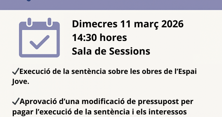 La sessió s’ha programat amb caràcter extraordinari per tal de complir els terminis de notificació relacionats amb l’execució de la sentència de les obres de l’Espai Jove.