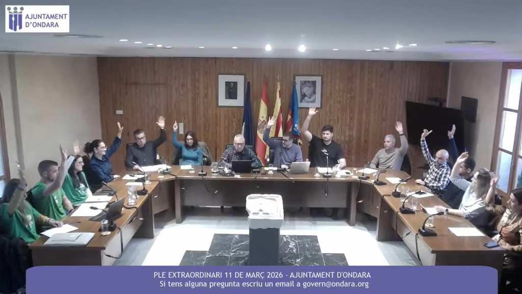 Ondara, 02.04.26. El Ple ordinari de l’Ajuntament d’Ondara va aprovar ahir per unanimitat una moció per defensar una educació pública digna i donar suport a les reivindicacions del professorat valencià, en una sessió marcada per la presència i la mobilització de la comunitat educativa local. La moció, presentada inicialment per Compromís i PSPV-PSOE, va rebre el suport de tots els grups municipals, inclòs el Partit Popular. El saló de sessions va registrar una nombrosa assistència de professorat de l’IES Xebic i del CEIP Sanchis Guarner, en el context de les mobilitzacions i de la vaga educativa convocada el 31 de març a tot el País Valencià.