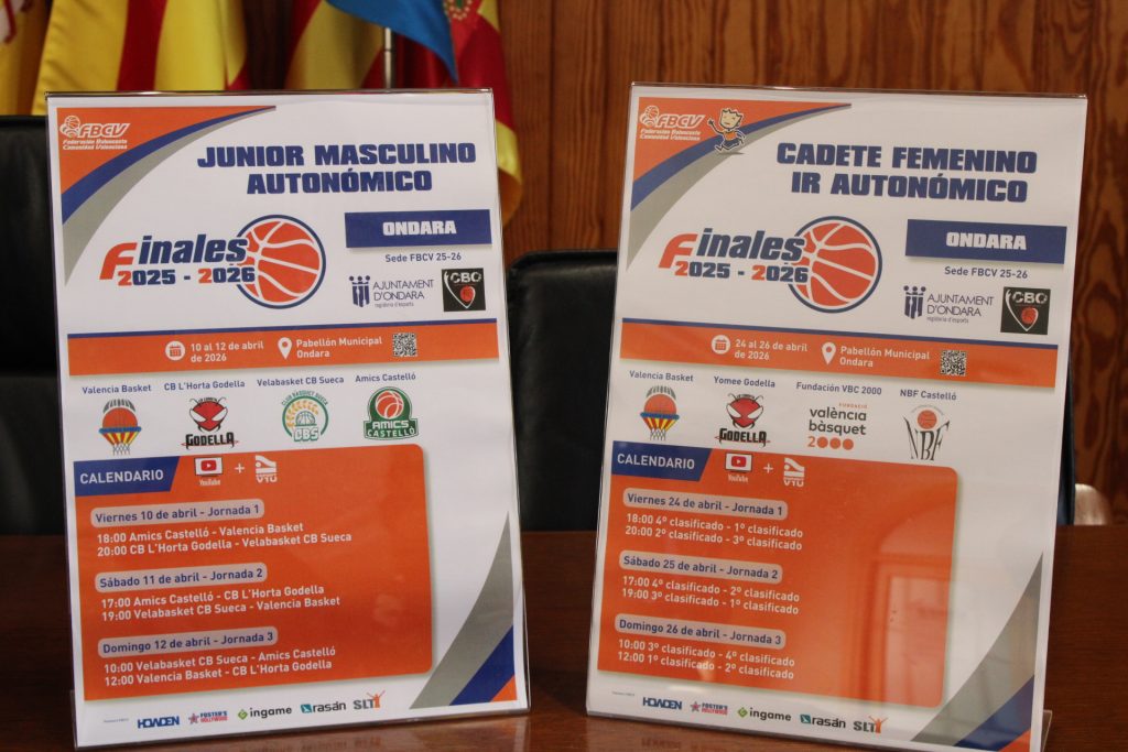 La primera gran cita tindrà lloc del 10 al 12 d’abril, amb la celebració de la Fase Final Júnior Masculí Autonòmic, en la qual participaran València Basket, CB L’Horta Godella, Velabasket CB Sueca i Amics Castelló. Els equips disputaran la competició en format de tots contra tots, i el campió i subcampió obtindran la classificació per al Campionat d’Espanya de Clubs. Els partits es podran seguir en directe a través de la plataforma EsportViu i del canal de YouTube de la FBCV. Dues setmanes més tard, del 24 al 26 d’abril, Ondara serà seu de les finals de les categories Cadet IR Autonòmic femení, amb els equips: València Basket, Fundación 2000 Valencia Basket, C.B. L’Horta de Godella, i NBF Castelló. A més, Ondara tornarà a ser seu destacada el cap de setmana del 23 de maig, quan el municipi acollirà les finals d’Infantil IR Preferent i Cadet IR Preferent, reforçant el paper d’Ondara com a espai de referència per al bàsquet de formació i competició.