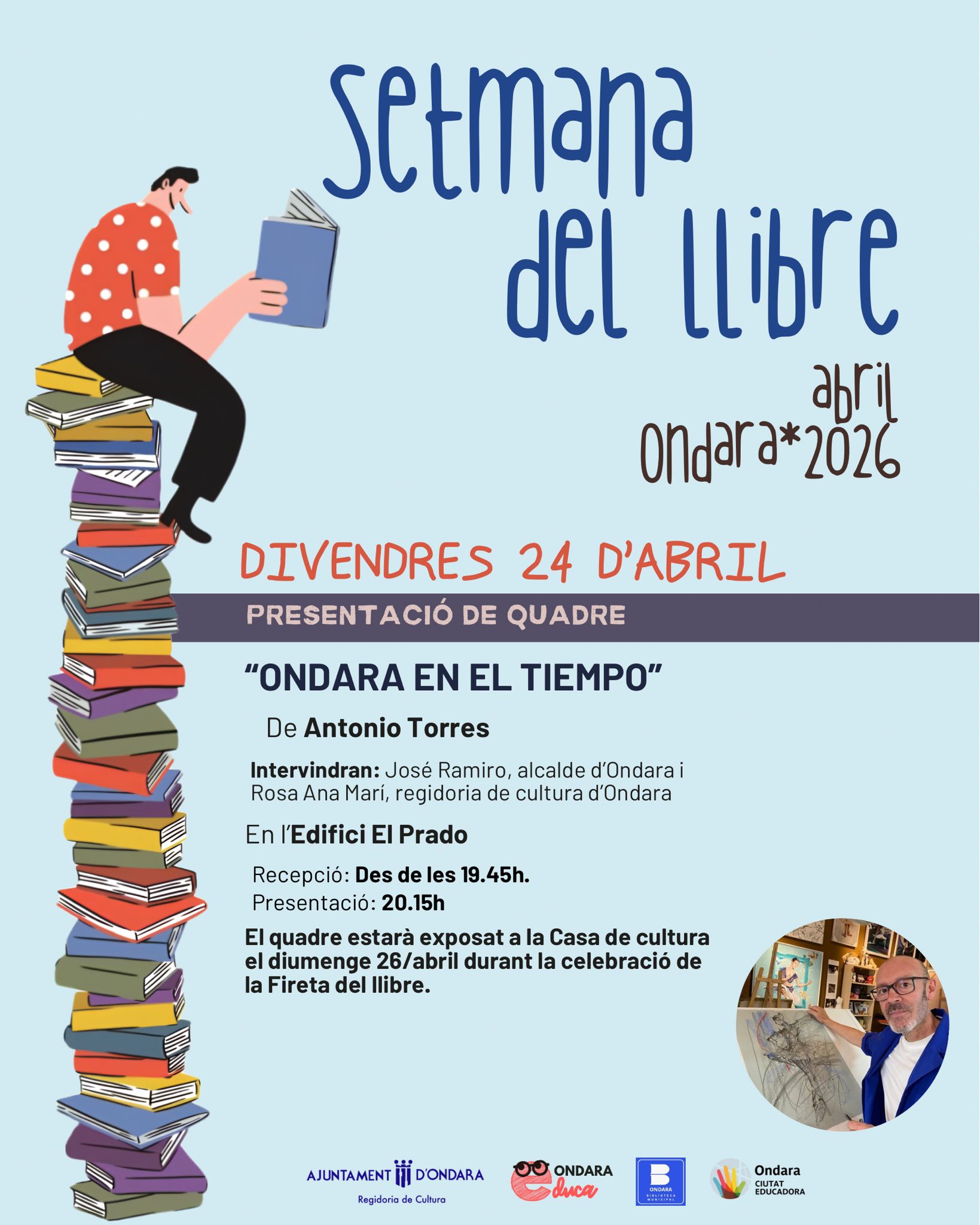 La Setmana del Llibre d’Ondara, organitzada per la Regidoria de Cultura de l’Ajuntament d’Ondara, continua el divendres 24 d’abril amb la presentació del quadre “Ondara en el tiempo”, obra de l’artista Antonio Torres .