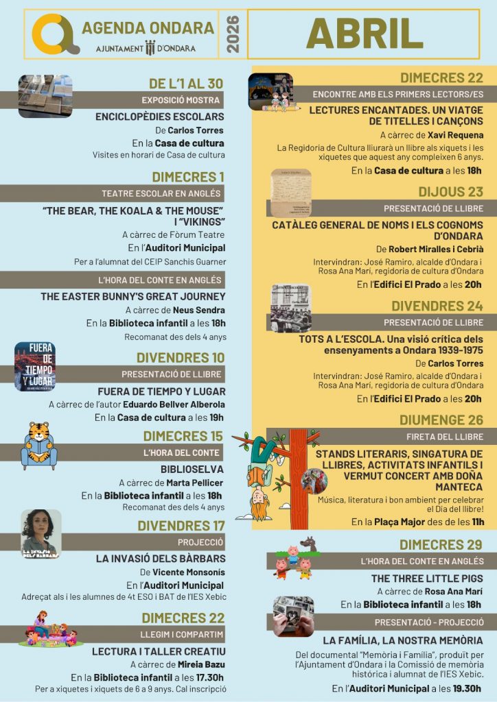De Robert Miralles i Cebrià. Intervindran: José Ramiro, alcalde d’Ondara i Rosa Ana Marí, regidora de cultura d’Ondara. En l’Edifici El Prado a les 20h