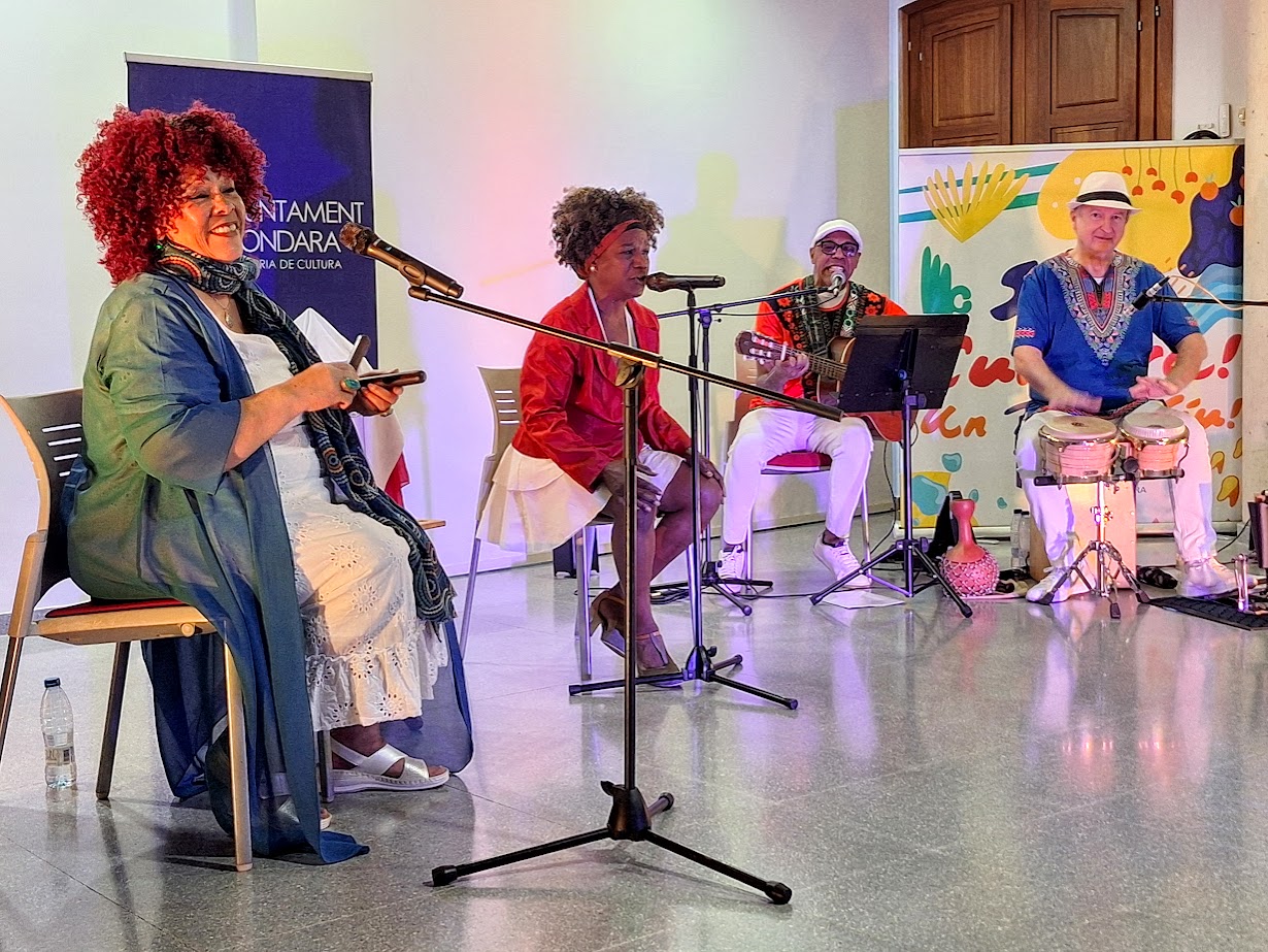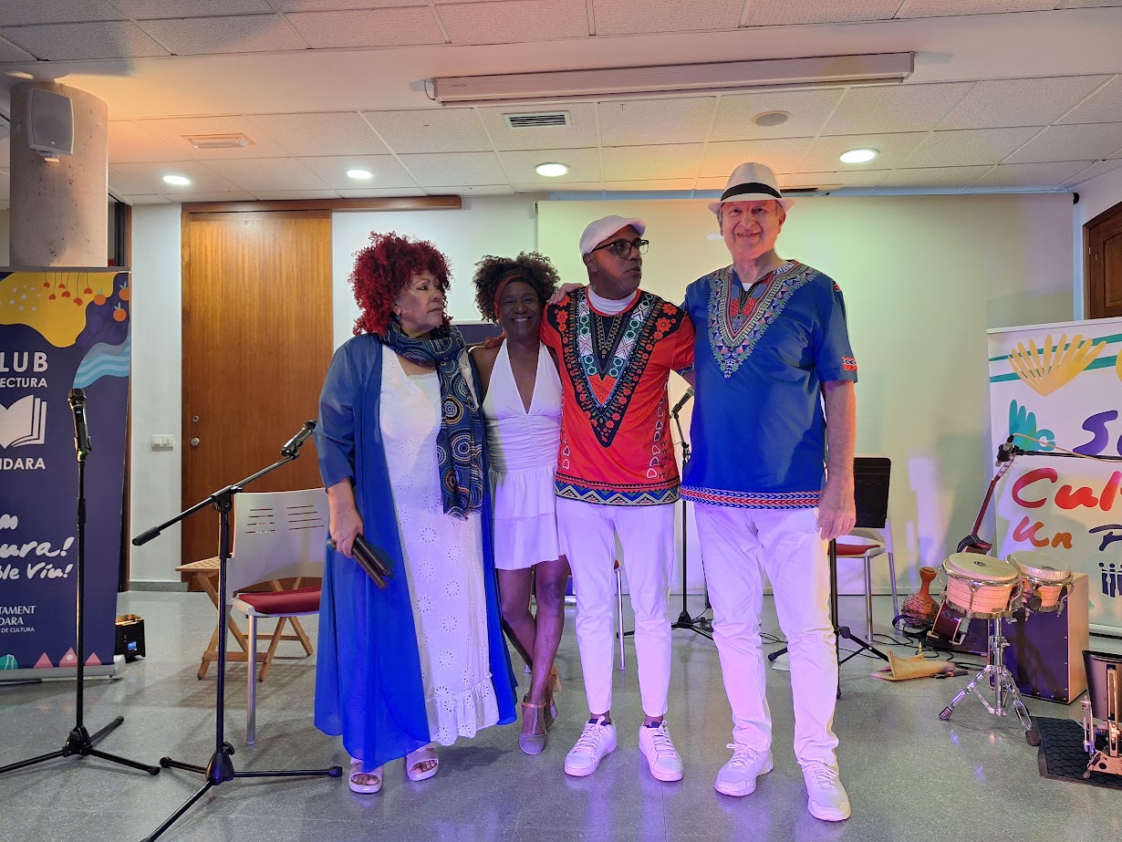L’actuació «Vivir Cuba» va estar protagonitzada per Coralia Rodríguez, reconeguda actriu i narradora cubana, acompanyada per Mayra Arango (cantant i actriu), Ernesto Pita (cantautor, guitarra i percussió) i Michael Kun (percussió). Junts van oferir un espectacle que va combinar narració, teatre, música i poesia, transportant el públic a un viatge ple d’històries, ritmes i emocions.