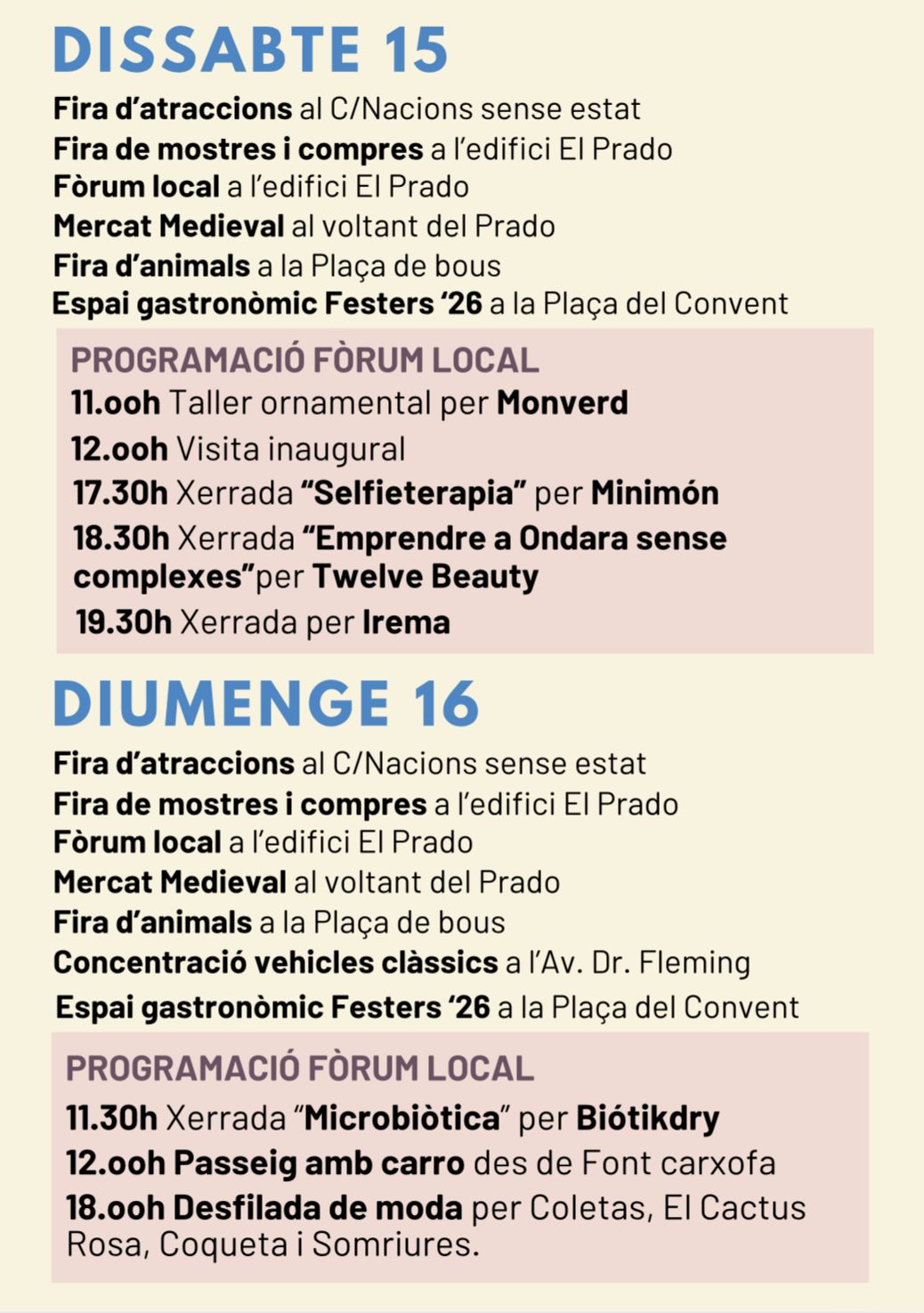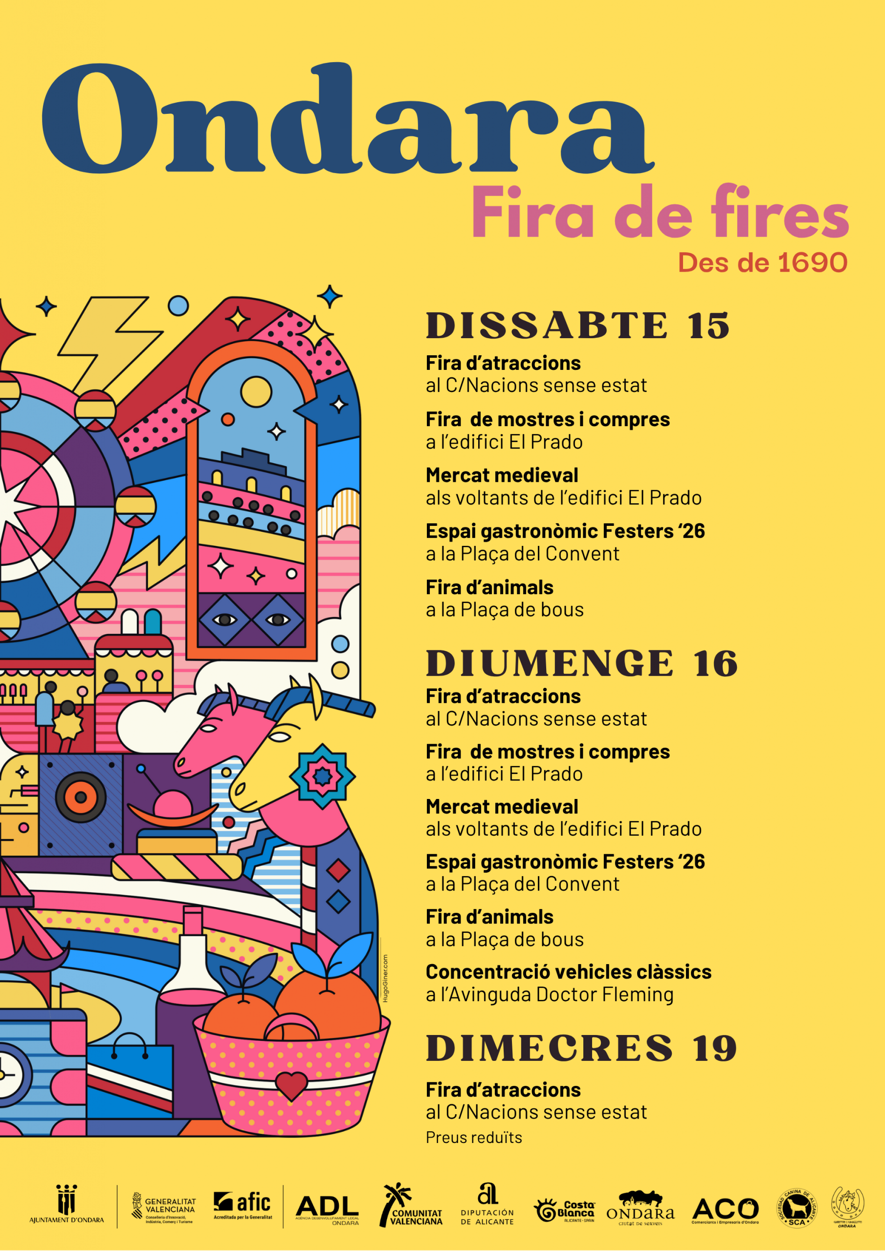 La inauguració de dissabte va comptar amb la presència de membres de la corporació municipal i representants de les associacions locals, en un acte ambientat per la música dels artistes del Mercat Medieval, que van donar color i animació a la jornada. Els representants van visitar tots els estands de la fira de Mostres, i també el Mercat Medieval i la Fira d’Animals. L’Alcalde d’Ondara, José Ramiro, va donar la benvinguda a la tradicional Fira de Fires, que es celebra des de l’any 1690 i que enguany torna a convertir-se en un punt de trobada per a empreses, comerços i visitants. En l’acte inaugural, Ramiro va destacat “l’honor que suposa iniciar, un any més, aquesta cita històrica que forma part de la identitat del nostre poble”. Durant el cap de setmana, la Fira ha acollit els expositors locals que han presentat productes, novetats i serveis, amb l’objectiu de mostrar la riquesa comercial i empresarial d’Ondara. L’Alcalde va subratllar que la Fira “obri les portes no sols als veïns i veïnes, sinó també a tota la comarca i visitants de fora”, i va remarcar el caràcter espectacular de l’esdeveniment, fins i tot amb un clima inusualment càlid per a aquestes dates. Ramiro va aprofitar per agrair la tasca del Departament de Promoció Econòmica i Turisme, així com de totes les persones, empreses, comerços i associacions que fan possible la Fira, inclosa l’Associació de Comerciants d’Ondara. La programació del cap de setmana incloïa tallers, fòrums, la Fira d’Animals; la Fira Medieval; la concentració de vehicles antics del diumenge; activitats gastronòmiques, com els bunyols de la parròquia i les propostes solidàries de Càritas, a més dels espais gastronòmics de les festes en honor a la Mare de Déu de la Soledat i del Crist 2026, que es van muntar a la plaça del Covent. L’Alcalde va convidar a tota la ciutadania i visitants a “gaudir de la Fira i de totes les activitats que ofereix Ondara aquest cap de setmana”.