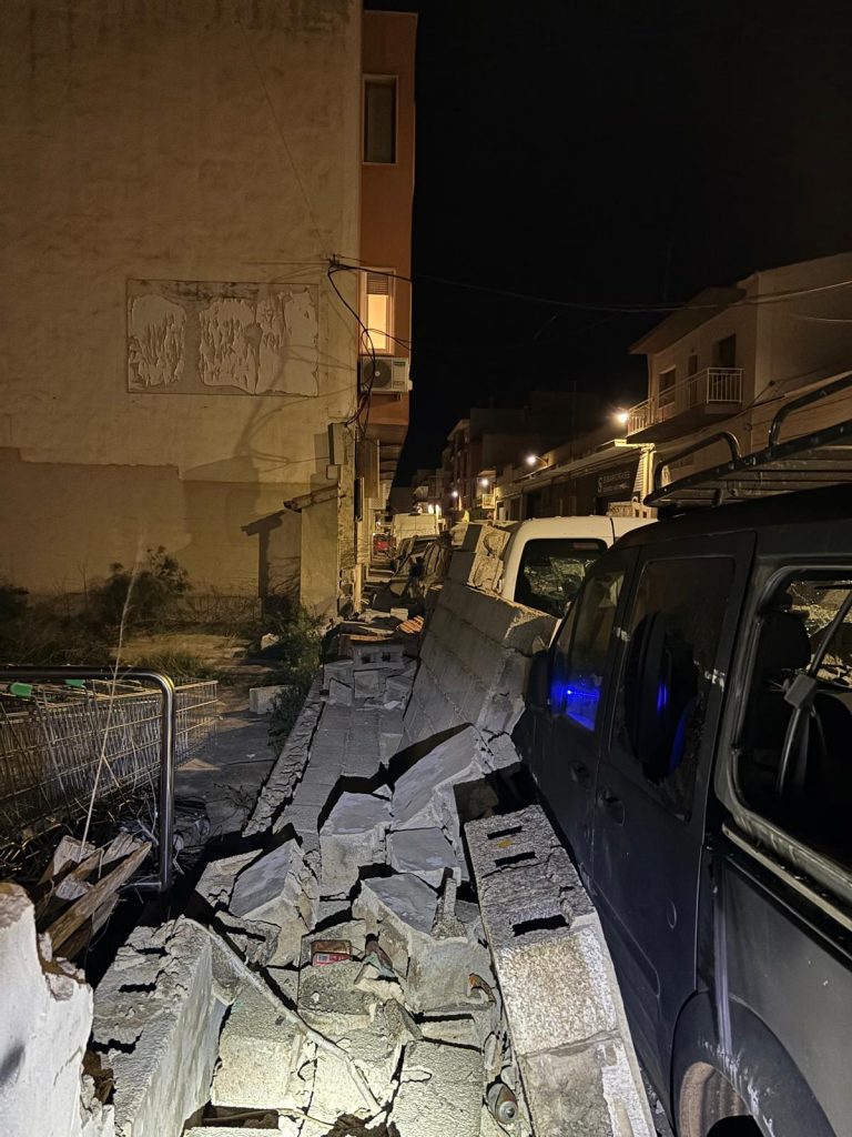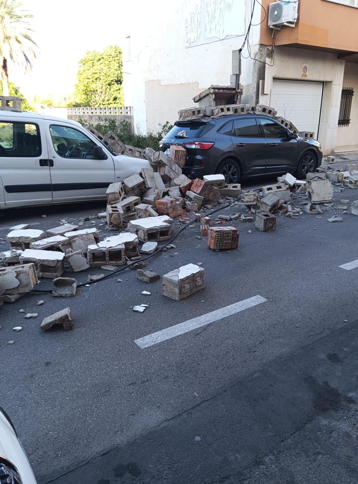 Ondara, 16.02.26. La Policia Local d’Ondara informa que durant la matinada de divendres (13) a dissabte (14 de febrer), s’ha produït el despreniment parcial del mur lateral de l’antic aparcament del que va ser el supermercat Consum, situat al carrer Blasco Ibáñez. L’incident ha tingut lloc en plena situació d’alerta taronja per forts vents, fet que podria haver contribuït al col·lapse de l’estructura. Com a resultat de la caiguda del mur, tres vehicles han resultat danyats. Blocs de formigó i restes de material de construcció han impactat sobre els cotxes estacionats a la zona. No es van registrat danys personals.