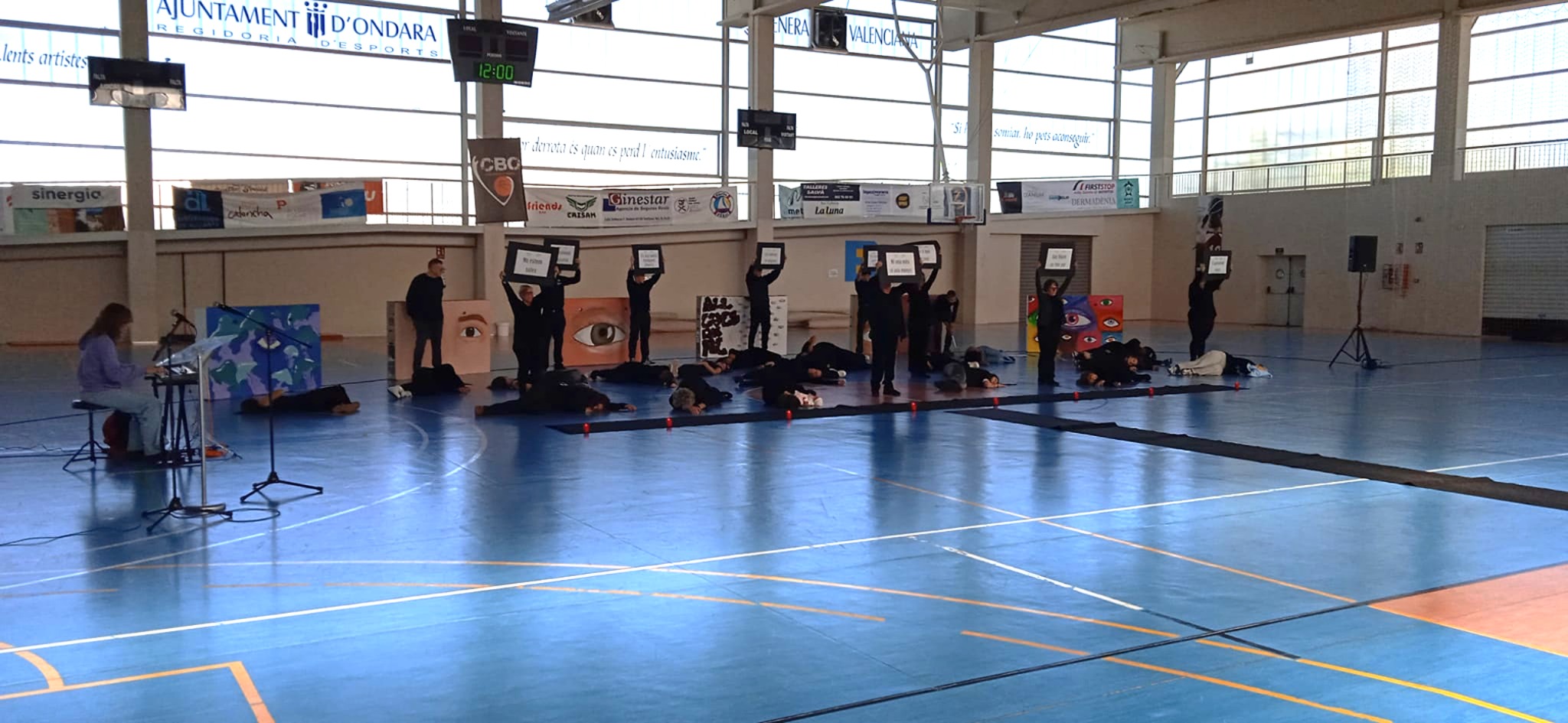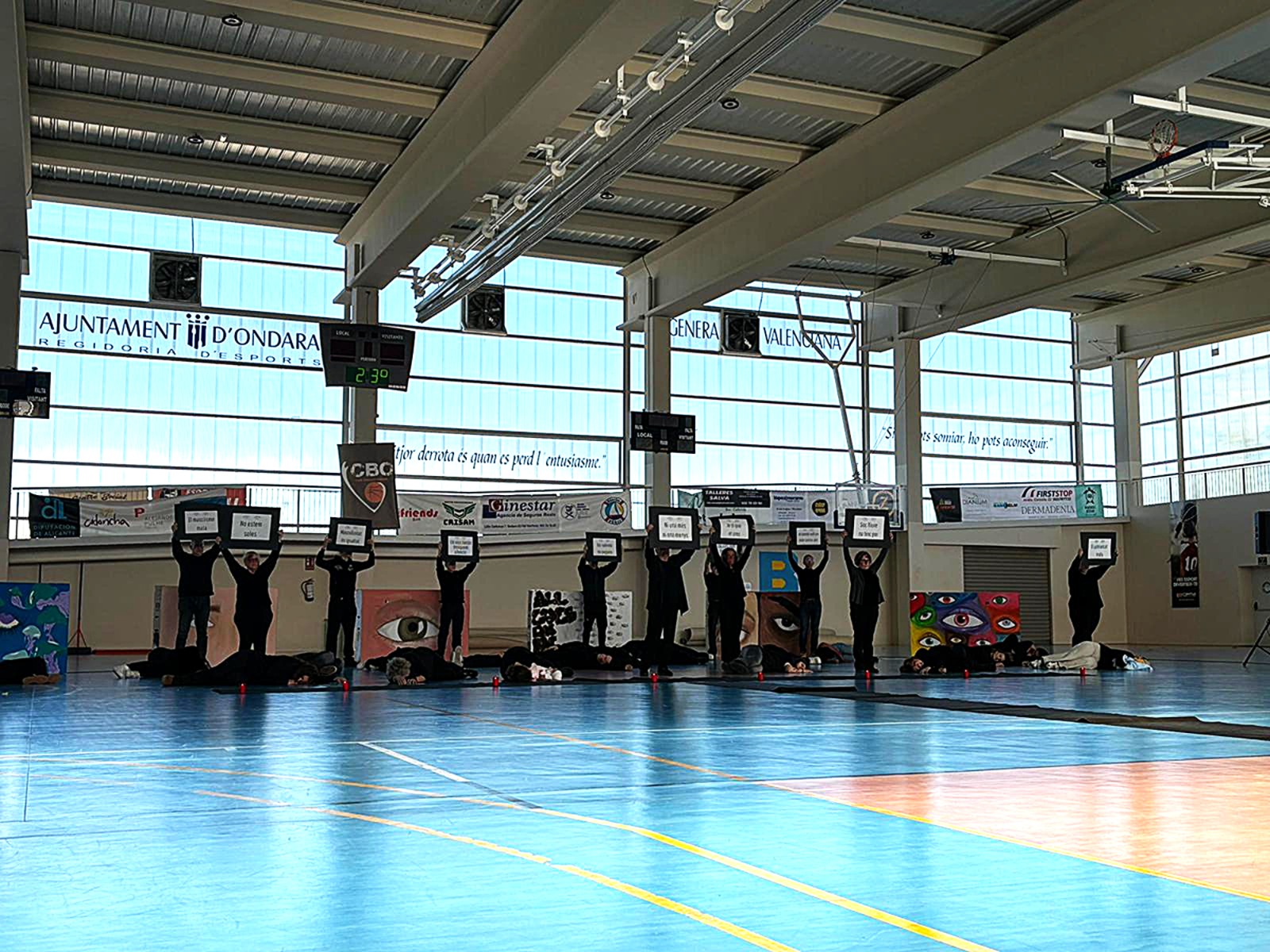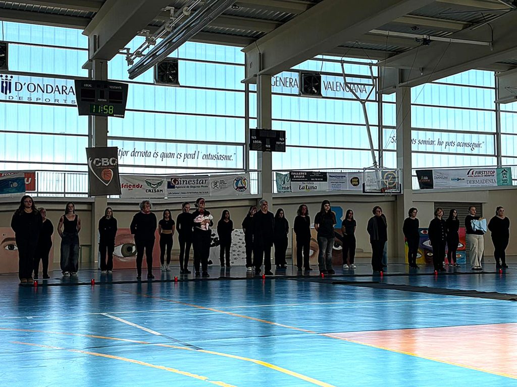 El Pavelló Municipal ha sigut l’escenari hui d’un acte colpidor en homenatge a les víctimes. Organitzat per l’IES Xebic, amb la implicació de la Comissió d’Igualtat de l’IES i associacions locals, i la col·laboració de la Regidoria d’Igualtat, la performance ha sacsejat cors i ments. Dues sessions (11:25 h i 13:05 h) han posat cara i nom a les 38 dones assassinades enguany per violència masclista. No són xifres: són vides truncades, somnis arrabassats.