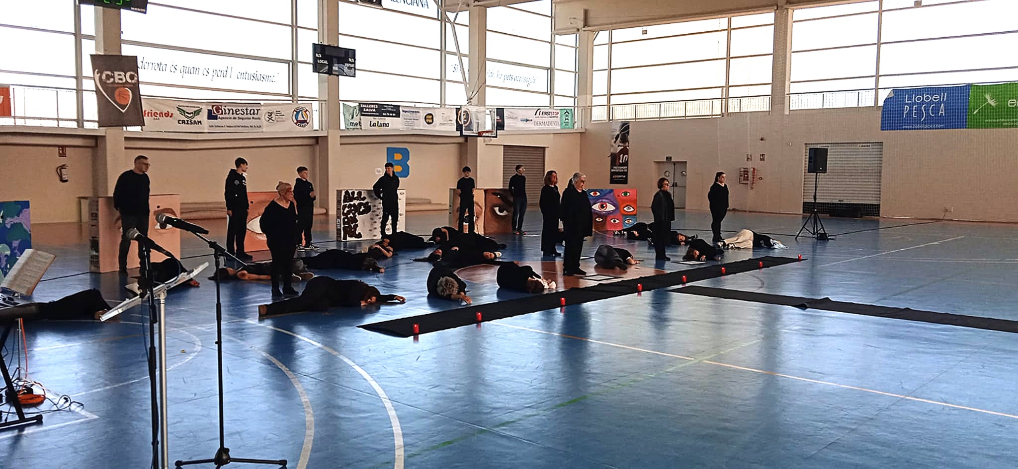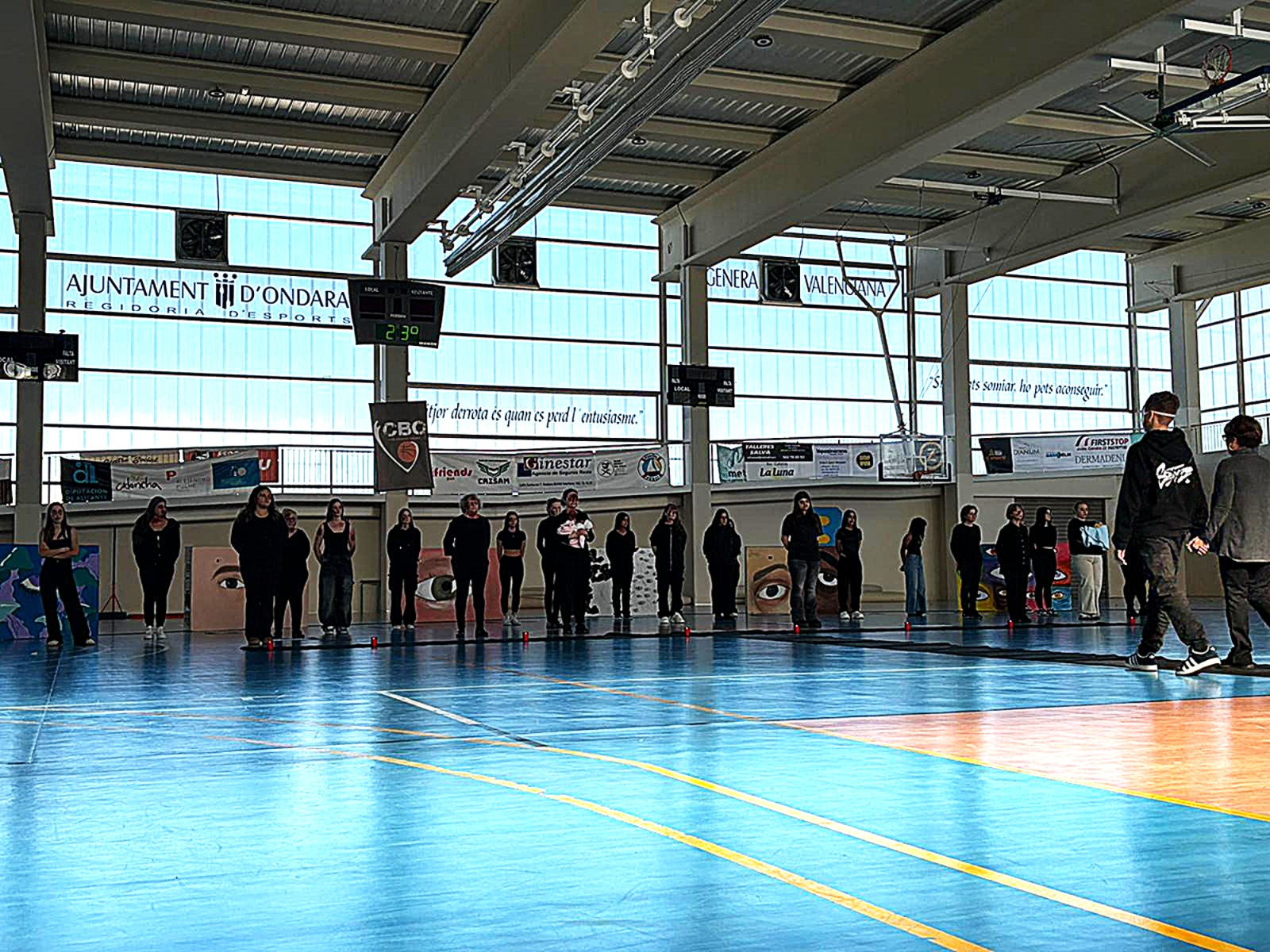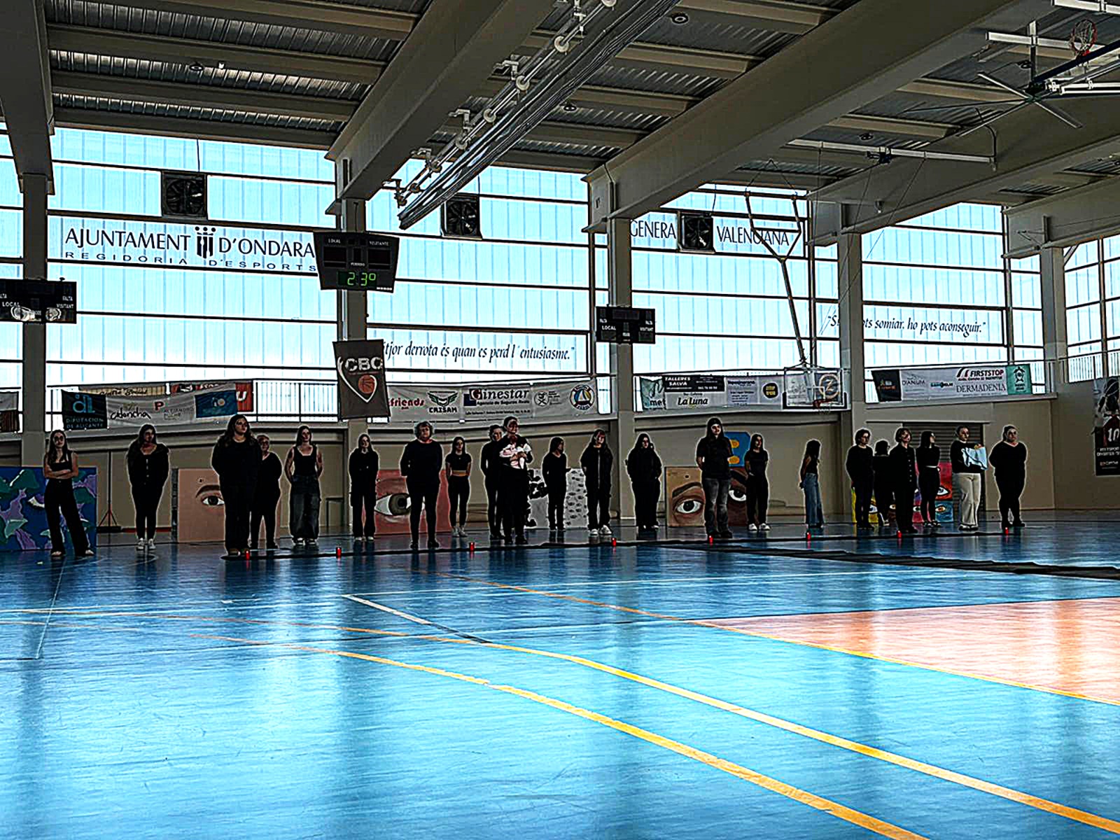 El Pavelló Municipal ha sigut l’escenari hui d’un acte colpidor en homenatge a les víctimes. Organitzat per l’IES Xebic, amb la implicació de la Comissió d’Igualtat de l’IES i associacions locals, i la col·laboració de la Regidoria d’Igualtat, la performance ha sacsejat cors i ments. Dues sessions (11:25 h i 13:05 h) han posat cara i nom a les 38 dones assassinades enguany per violència masclista. No són xifres: són vides truncades, somnis arrabassats.