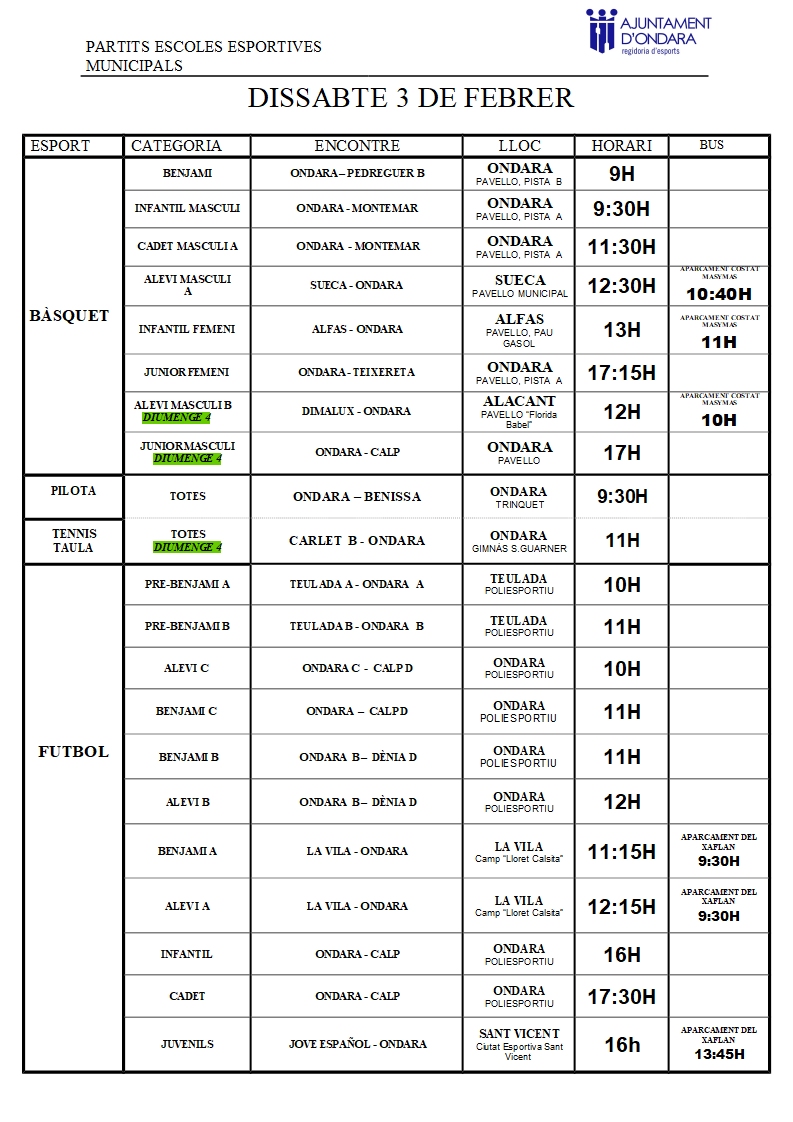 DISSABTE 3 DE FEBRER