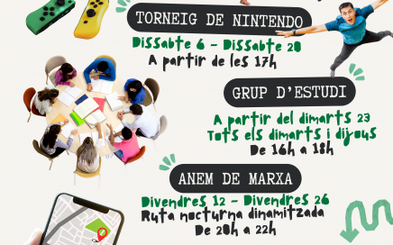 Setembre a l’Espai Jove d’Ondara Ja tenim ací la programació d’activitats per a este mes. Apunta’t les dates: A partir d’ara, Espai Jove obri en horari d’hivern: matins i vesprades de dilluns a divendres, i dissabtes per la vesprada. Més informació a la web de joventut.ondara.org AJUNTAMENT D’ONDARA * REGIDORIA DE JOVENTUT
