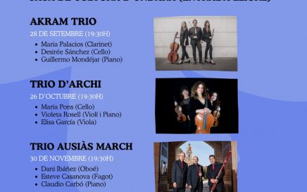 El primer concert s’oferirà el diumenge 28 de setembre: Akram Trio amb Maria Palacios (clarinet), Desirée Sánchez (violoncel) i Guillermo Mondéjar (piano) Ondara, 04.09.25. La Casa de Cultura d’Ondara serà l’escenari d’un atractiu Cicle de Música de Cambra que tindrà lloc entre setembre i desembre, amb quatre concerts protagonitzats per formacions de gran qualitat artística. […]