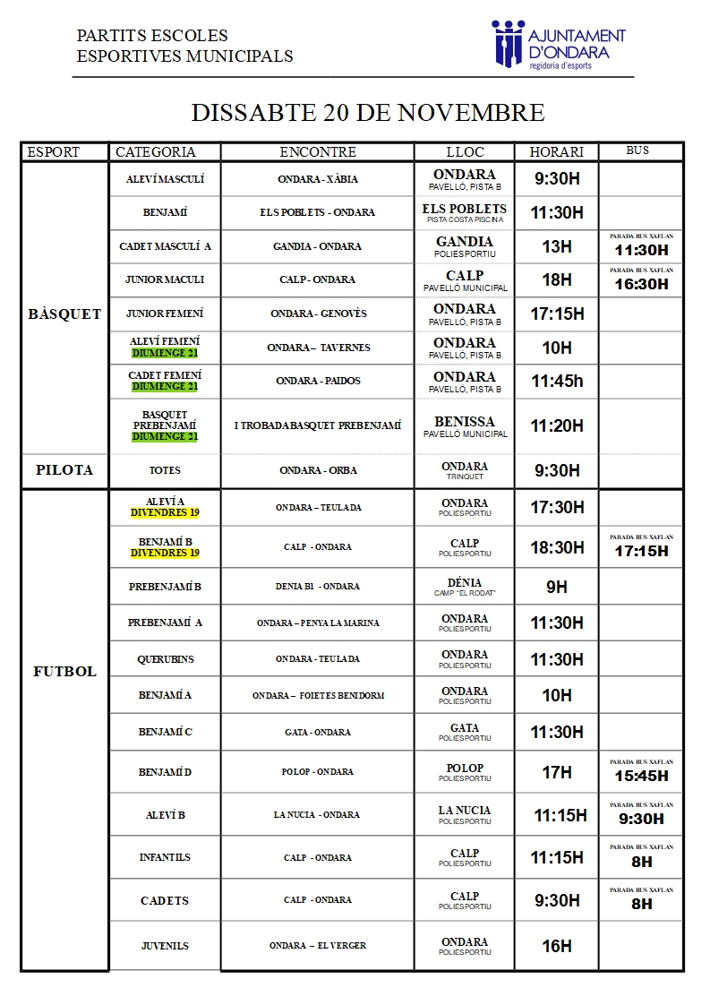 partits escoles 20 -21 NOVEMBRE