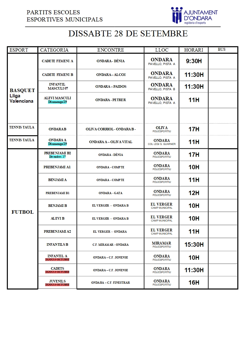 partits escoles 28-29 setembre 1